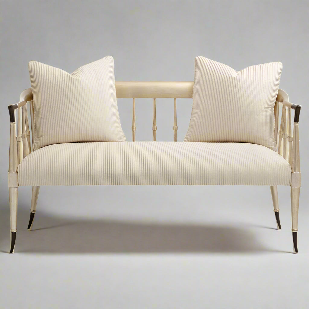 Caracole Twice As Beautiful French Country Ivory Champagne Gold Spindle Back Settee MB1-16