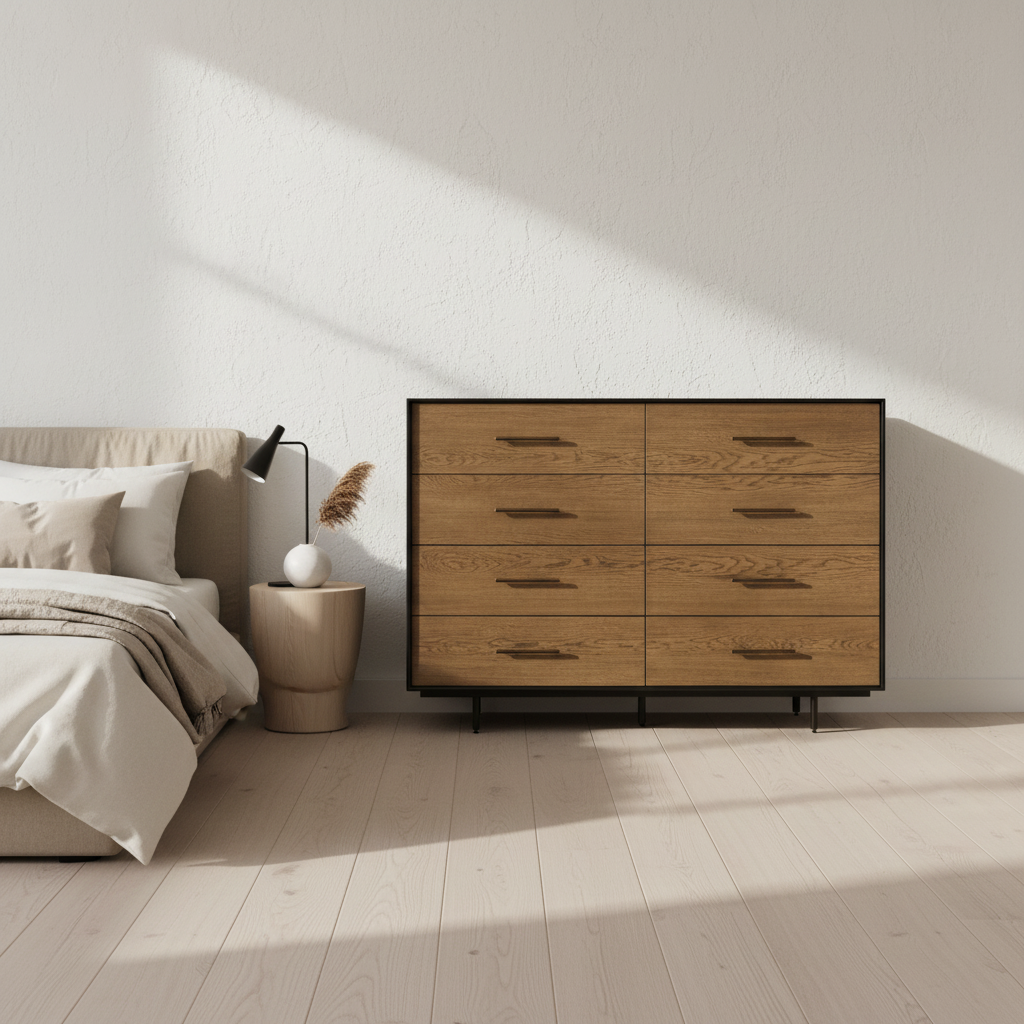 Four Hands Carrey MCM Oak / Black Iron Frame 8 Drawer Double Dresser MB1-60