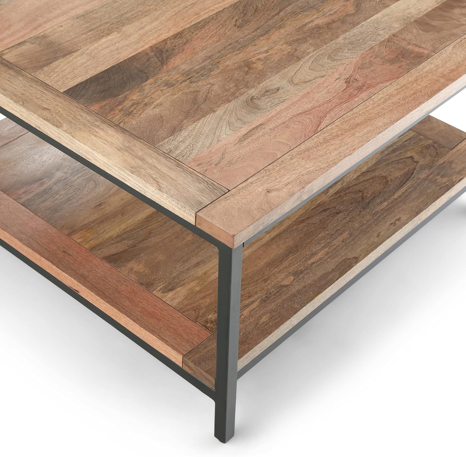 Skyler furniture is industrial in sensibility, modern in approach and perfect for the stylish individual who is looking for that perfect square Coffee Table. The box shaped steel metal base with charcoal finish mixed with solid Mango Wood fits smoothly into most modern, contemporary or eclectic home designs. The square shape makes for a practical and functional fit into your room setting.