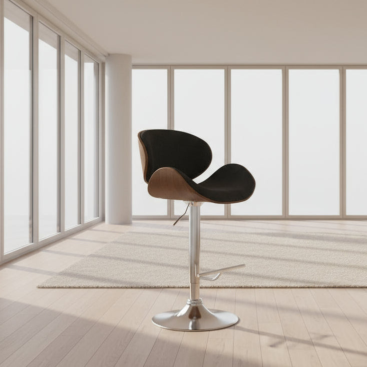 Enjoy the comfort of the Mid Century Modern Marana Bentwood Adjustable Height Swivel Bar Stool. This classic, vintage design features ergonomically curved seat and back that enfolds you when seated. The seat both swivels and easily adjusts for height. This stool is great for kitchen counter and bar seating. Stone Grey Vegan Leather.