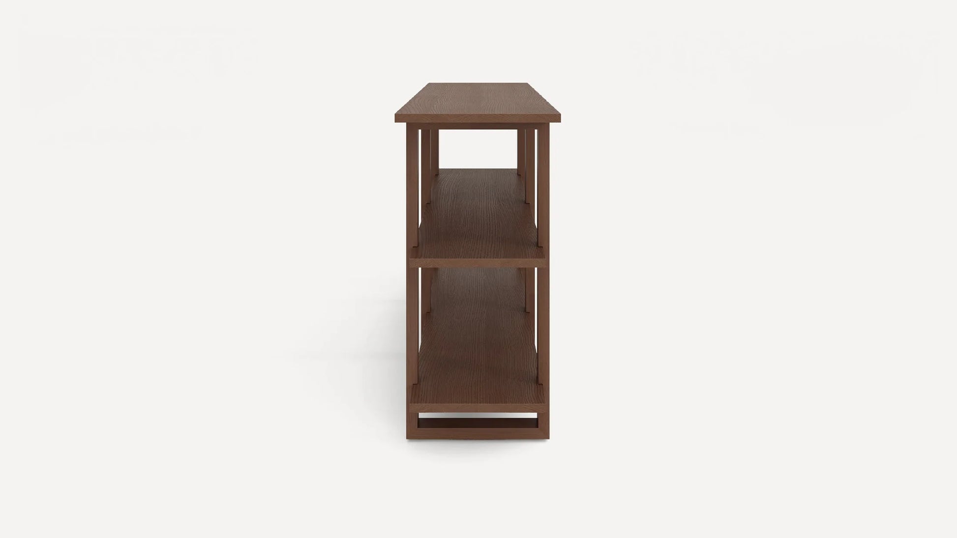We extended the simple, straightforward carpentry of our best-selling Index Collection into a versatile open console, as appropriate under a TV as it is in an entryway or against a sofa. As an alternative to the traditional closed credenza, the Index Console is perfect for putting items on display, whether you need overflow storage for books, want to keep your soundbar free and clear, or simply love looking at your ’90s VHS collection.