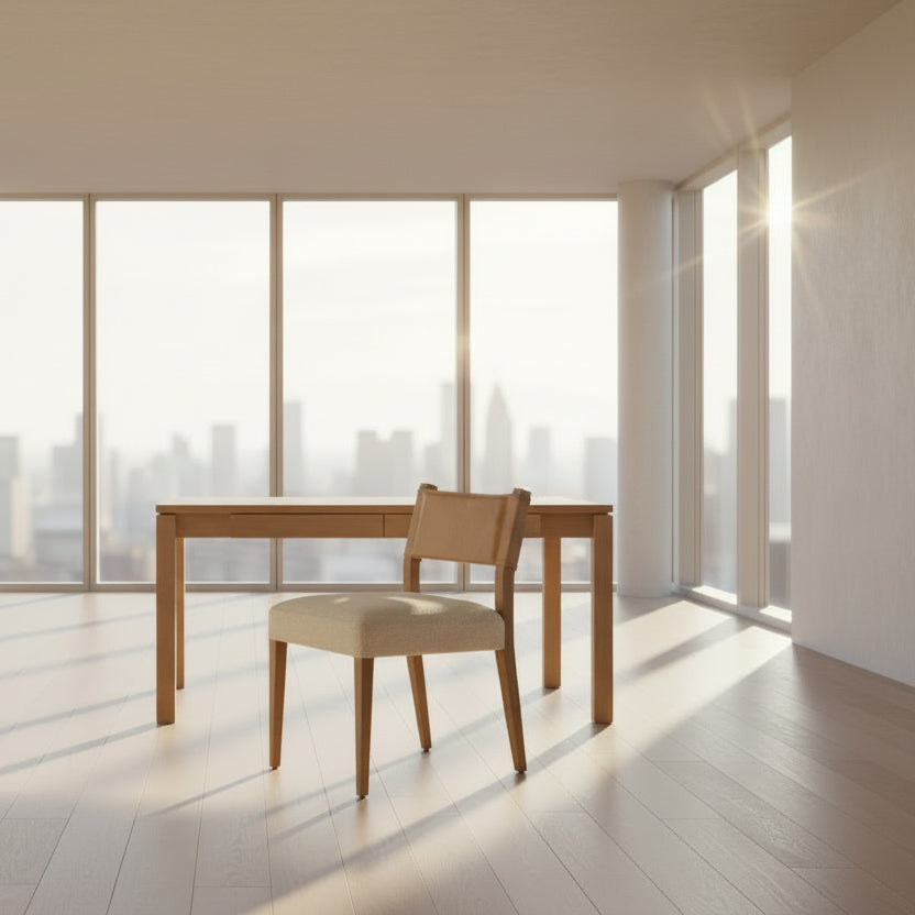 The Ferris Dining Chair features a sturdy parawood frame wrapped in top grain leather and high-performance upholstery. Designed for everyday use, its spill and stain-resistant fabrics make it ideal for busy dining spaces while maintaining a refined, modern aesthetic.