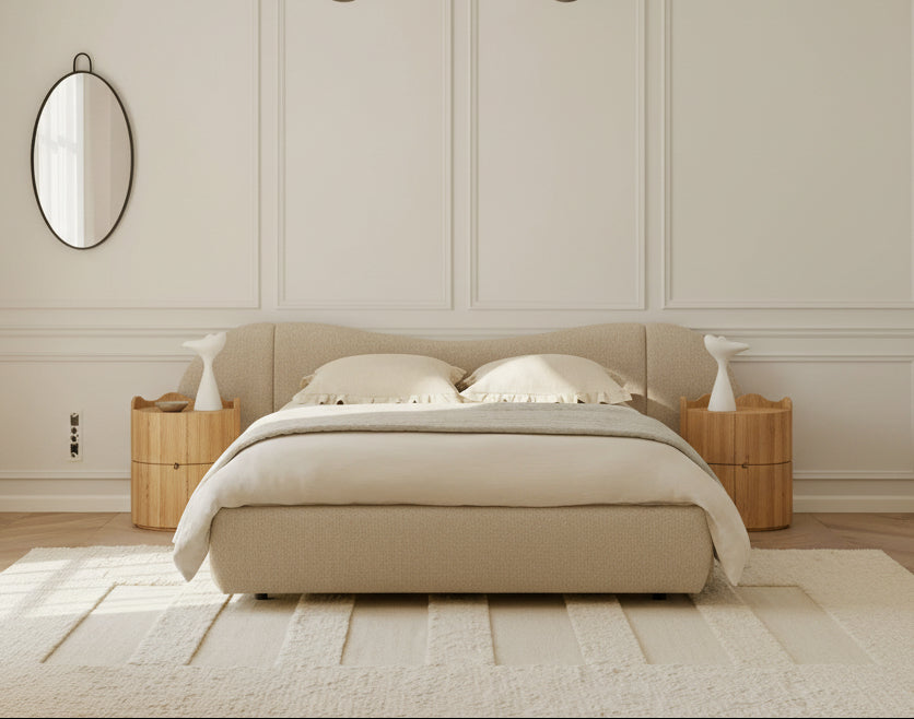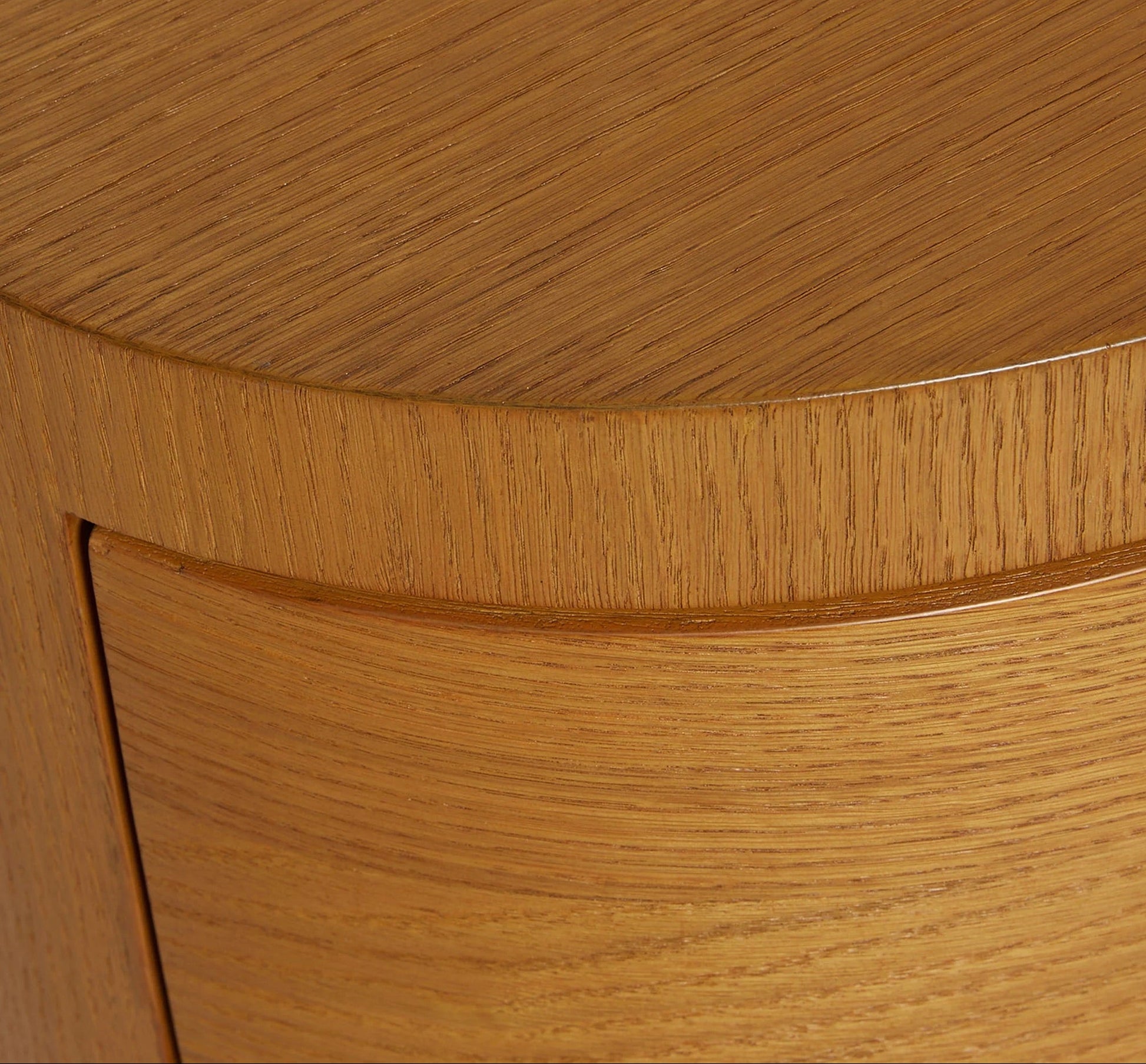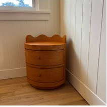 Bring an iconic look with the Ripple nightstand. Wavy lines give this nightstand a distinctive profile to match its cylindrical shape, timeless woodwork quality, and curved drawer fronts. This piece is from our exclusive Sarah Sherman Samuel collaboration and features all the trademarks of her warm, edited style.