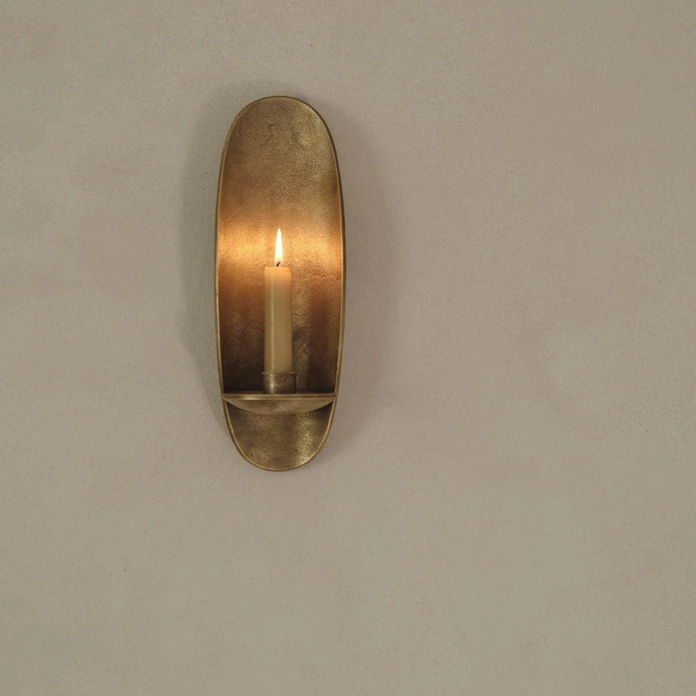 Crafted from recycled cast aluminum, the Ferm Living Agapé Wall Candle Holder radiates rustic charm. Its textured surface creates a serene, warm ambiance, making your space a tranquil sanctuary.