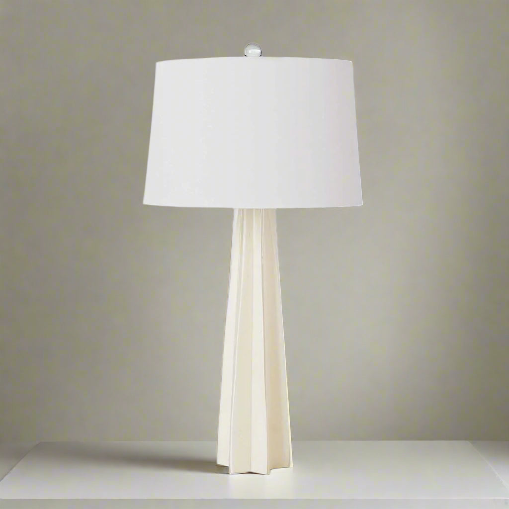 Featuring a crisp white glass finish formed in a star silhouette, the Glass Star table lamp has endless contemporary styling options. Polished nickel hardware and a tapered natural linen shade beautifully complement the lamp's classic design.