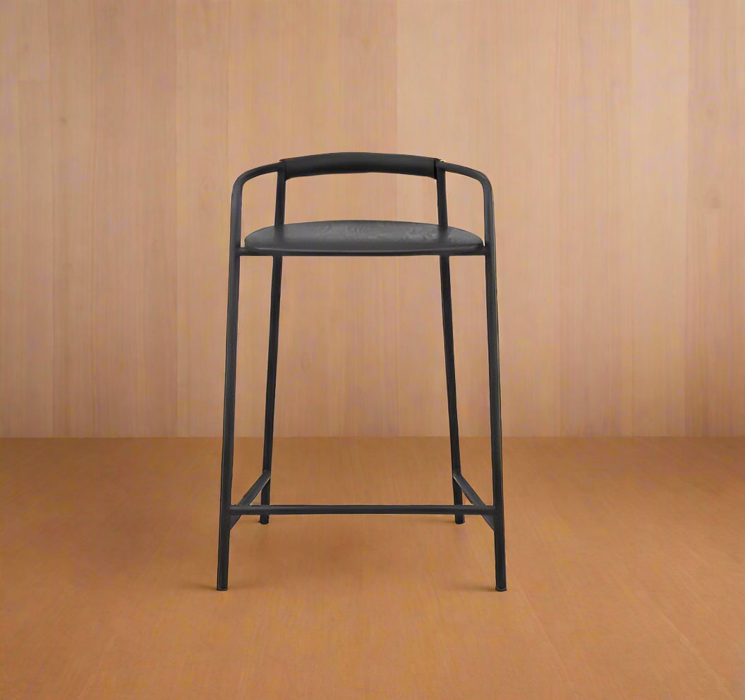 There's beauty in simplicity. The Slow Mornings Collection features bold, minimal design that keeps your space open and your kitchen comfortable. This counter stool has slim legs, a low-profile backrest, and a padded seat upholstered in 100% top-grain leather, so it works beautifully with just about any aesthetic. Get comfortable and take your time this morning.