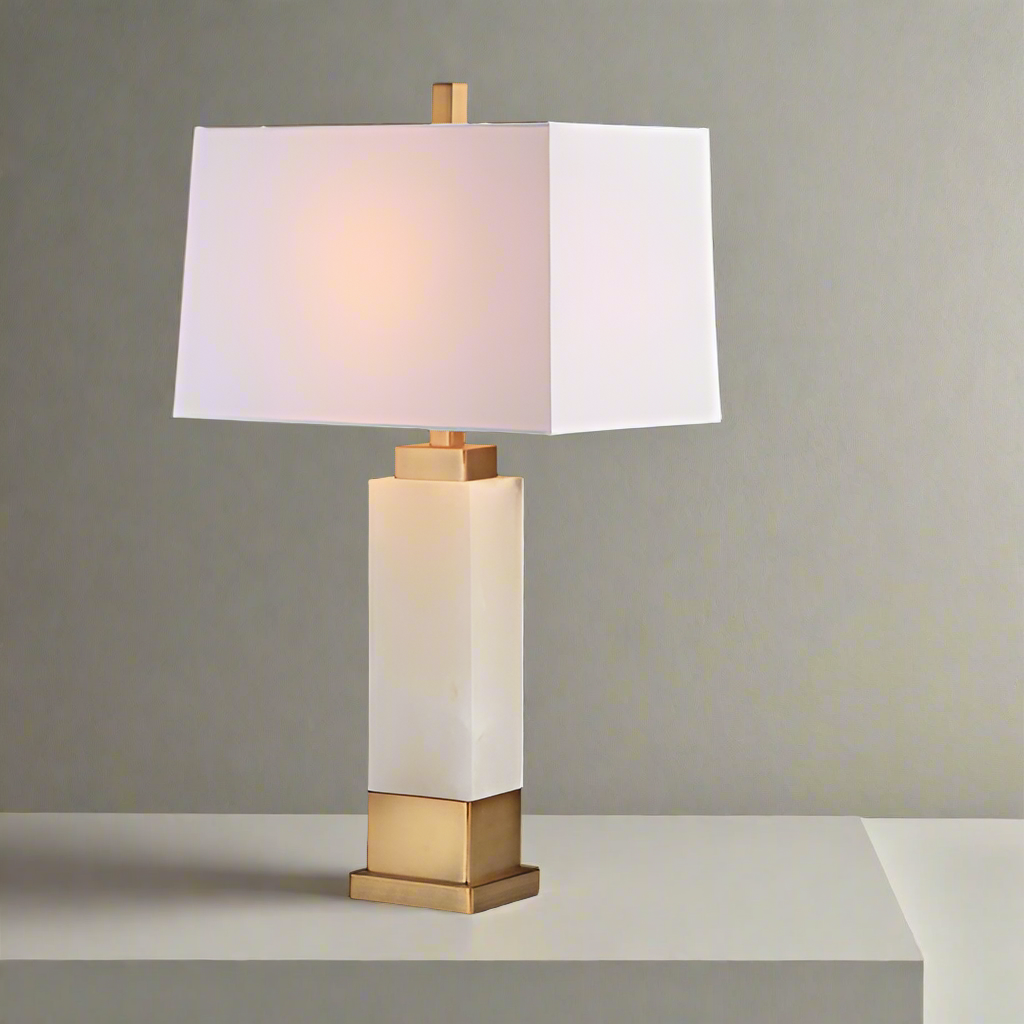 The white knight of any sophisticated interior, this modern table lamp makes a substantial statement. Crafted with solid marble, its natural beauty is illuminated by a luxurious gold finish. A crisp white rectangular shade adds a polished designer touch.