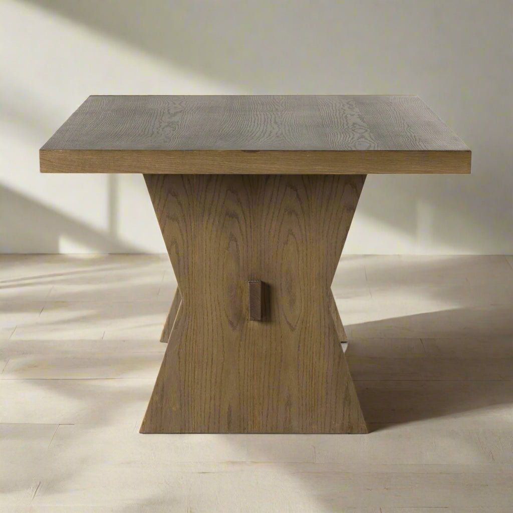 Inspired by European antiques, grand scaling and bowtie-shaped legs serve plenty of presence. A single stretcher adds a traditional feel to this refreshed altar table. Seats 10 comfortably.