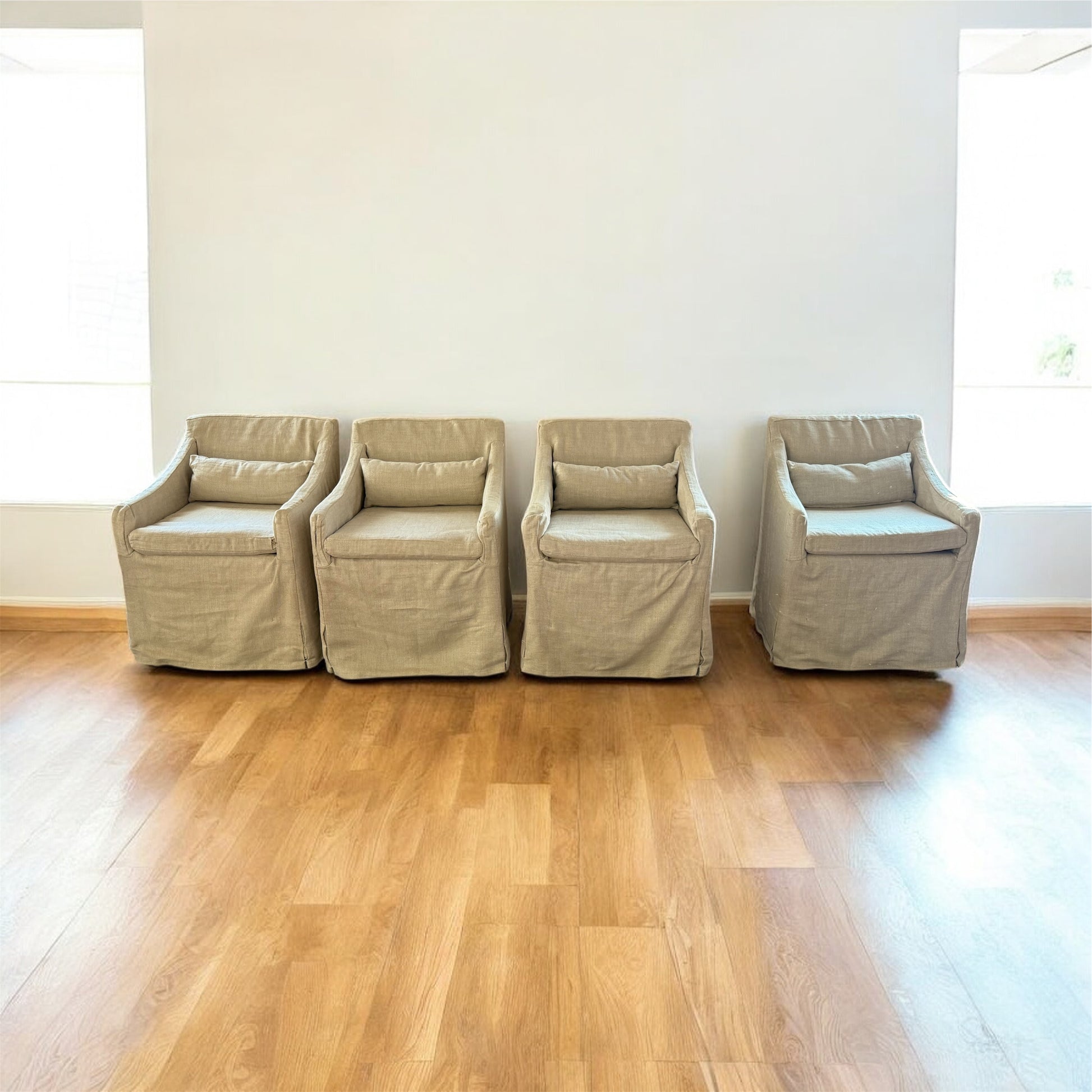 4 Low Belgian Track Arm Restoration Hardware Slipcover Beige Dining Chairs HR8