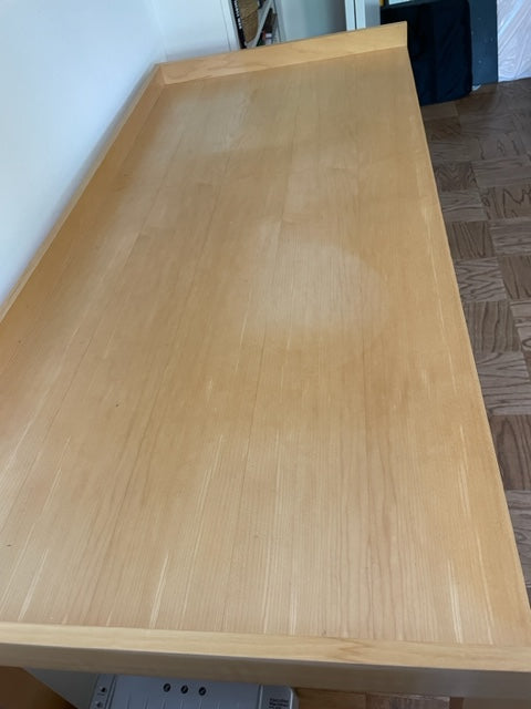Description: Contemporary feel computer desk with the added touch of a raised lip on 3 sides.